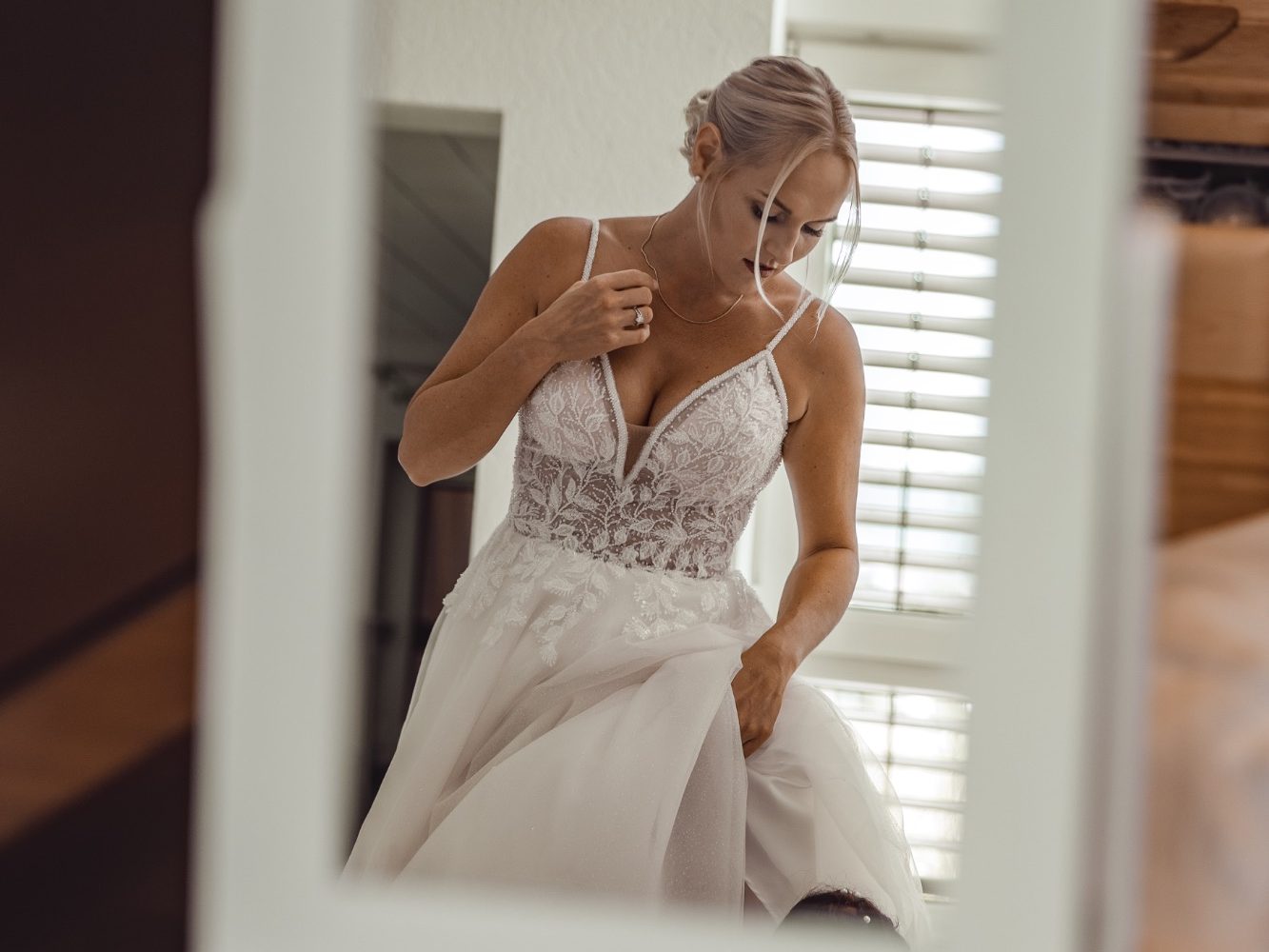 Es ist der Augenblick, in dem ihr euch im Spiegel betrachtet und realisiert: Heute ist der richtige Zeitpunkt, um euren gemeinsamen Weg zu festigen. Und dann wisst ihr: Wir sehen uns bald beim "First Look" in diesen hinreißenden Ensembles zum ersten Mal.